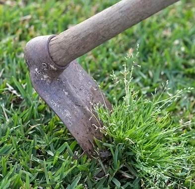 Manual removal may work in isolated cases, but selective herbicides for grassy weeds are the usual treatment when infestations spread.